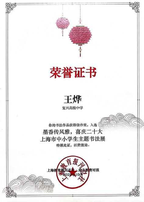 喜报 | 热烈祝贺复兴人在上海市中学生作文竞赛中荣获佳绩!