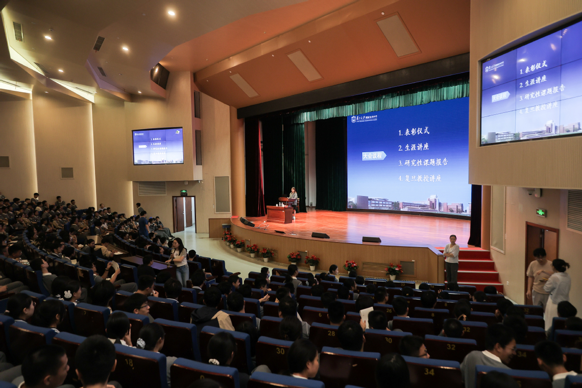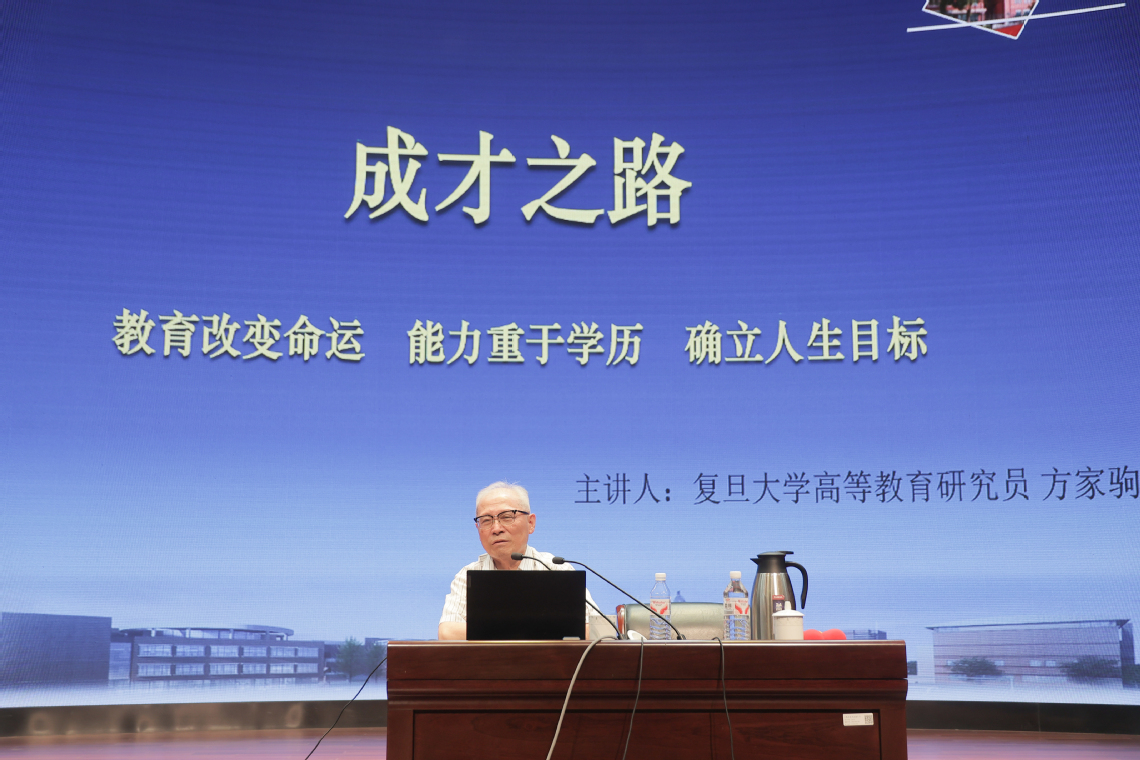 大会的第四项议程,复旦大学著名数学研究员、复兴中学杰出校友方家驹先生重返母校,为立达学部的同学们带来了一场题为《成才之路》的专题讲座。方教授以“现身说法”的方式,回顾了自己与一家两代人与复兴中学的不解之缘。通过讲述在复兴的求学与成长故事,生动地诠释了“复兴学子拥有无限可能”的深刻内涵。