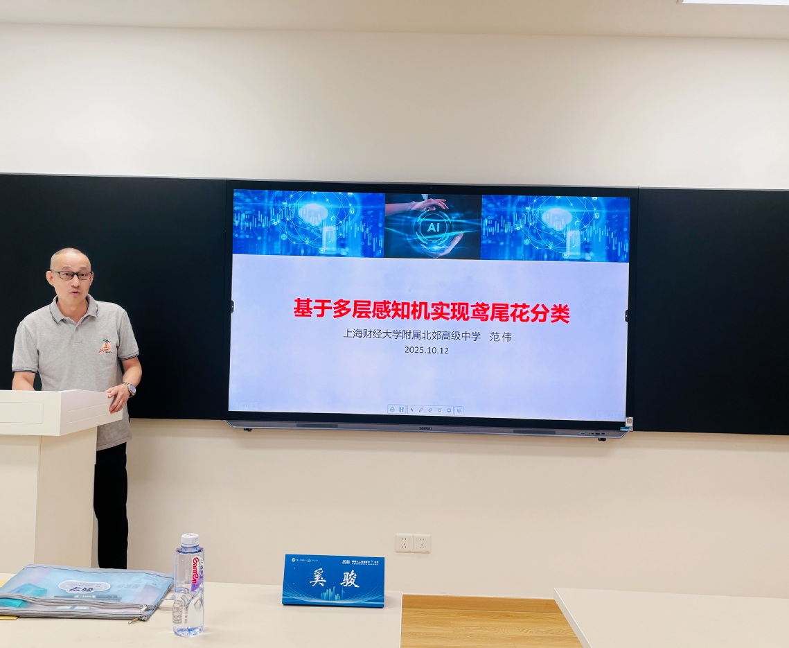 上海财经大学附属北郊高级中学范伟老师在《基于多层感知机实现鸢尾花分类》分享中,通过回顾罗森布拉特感知机的历史脉络,系统演示了从环境部署、模型构建到参数优化的完整实现过程。他引导学生从算法原理层面理解多层感知机的工作机制,通过鸢尾花分类这一经典案例,为学生理解深度学习基础架构提供了重要的实践参照。