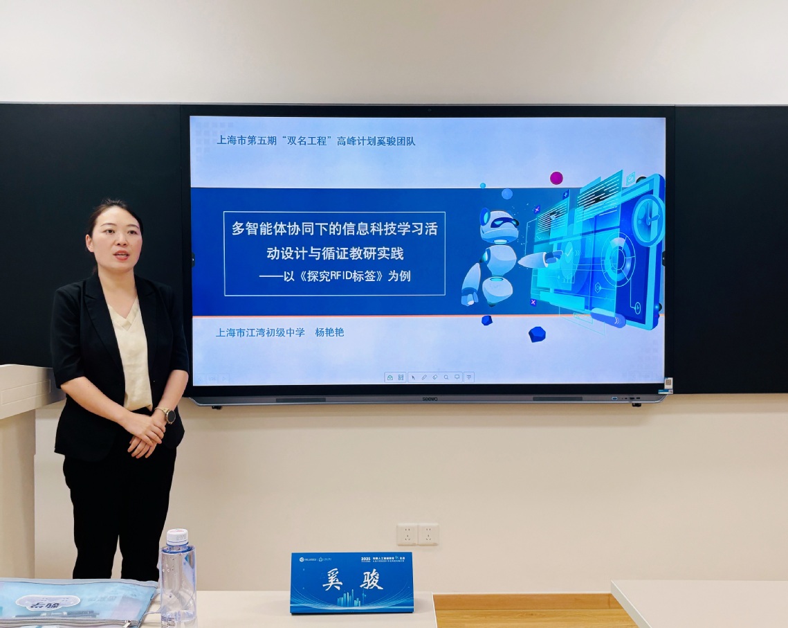 上海市江湾初级中学杨艳艳老师在《多智能体协同下的信息科技学习活动设计与循证教研实践》中,提出了从单工具辅助到多智能体协同的课堂范式转型。她构建的以教师为核心的协同框架,通过多智能体在课前协同设计、课中动态支持、课后循证评估三阶段的有机分工,为基于实证的精准教学提供了系统解决方案。