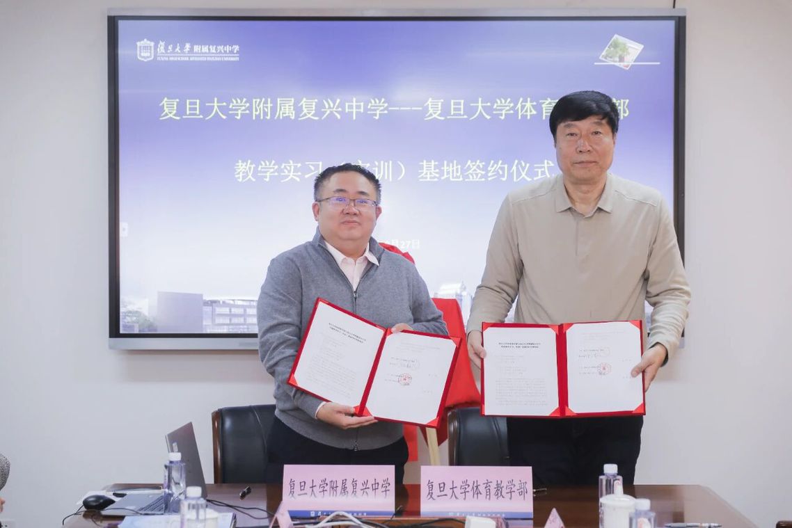 10月27日上午,复旦大学附属复兴中学与复旦大学体育教学部共同签署共建教学实习(实训)基地合作框架协议,会议在我校1801会议室举行。
