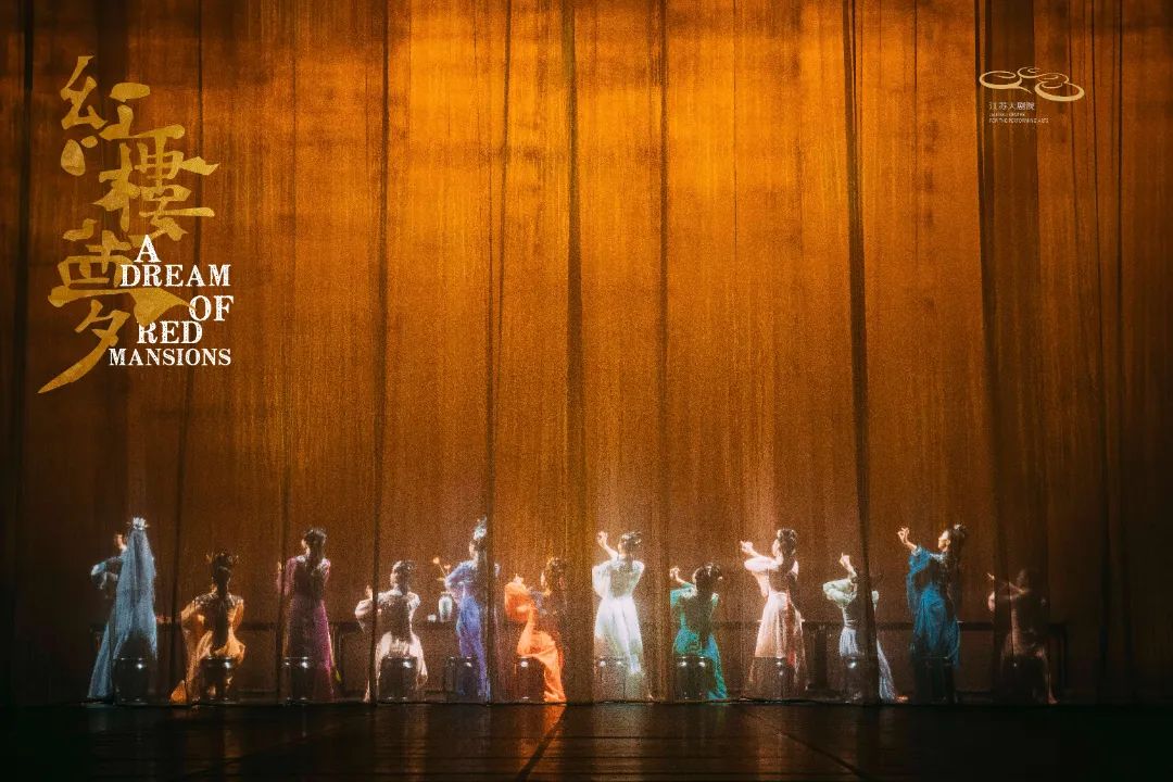 舞剧《红楼梦》以曹雪芹文学巨著为蓝本,以贾宝玉与林黛玉、薛宝钗的爱情为主线,采用章回体小说结构,包含《入府》《幻境》《含酸》《省亲》《游园》《葬花》《元宵》《丢玉》《冲喜》《团圆》《花葬》《归彼大荒》十二章节,勾勒出大观园中人物的命运浮沉与家族兴盛衰落。视觉上借鉴明清古画的美学特质,旨在展现端庄古雅的舞蹈群像;多处运用了富有中国特色的古典符号,既是对中华民族优秀传统文化的致敬,也以年轻一代视角对民族文学经典进行重新演绎。
