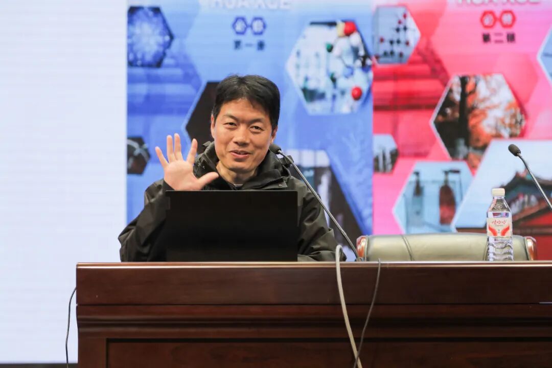任峰老师负责化学学科的指导。他以生活中常见的消毒剂制备为情景化命题范例,生动拆解了化学学习所需的三大核心能力——扎实的知识储备、活跃的创新思维与高效的信息加工能力。讲座中,任老师特别引用著名科学家卢嘉锡提出的“C3H3”原则,勉励同学们以好奇(Curiosity)、恒心(Constancy)、信心(Confidence)和勤奋(Hardworking)、刻苦(Hardsuffering)、思索(Headwork)的精神深耕化学领域。