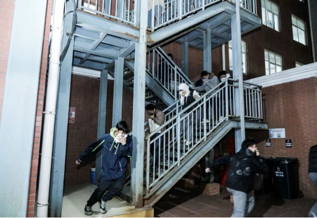 为进一步加强校园安全管理,切实增强全体住宿师生的消防安全意识与应急避险能力,筑牢校园安全“防火墙”,2025年11月27日晚,复旦大学附属复兴中学组织全体住宿师生开展了一场贴近实战的夜间消防应急疏散演练。