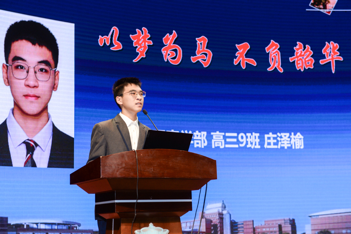 学生代表、高三(9)班庄泽榆同学以《以梦为马,不负韶华》为题发言。他结合自身学习经历,分享备考体悟与成长思考,表达对当下的坚守与对未来的憧憬,展现了复兴学子自律进取、勇于担当的精神风貌。他勉励高三同学坚定目标、沉着应考,在点滴积累中厚植实力;也鼓励高一、高二同学夯实基础、把握节奏,以饱满的热情投入新学期,在脚踏实地的奋斗中不断靠近理想。