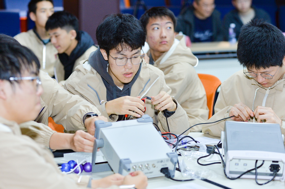 课程设计完美体现了“在做中学”的教育理念与高水平科研的融合。学生们不仅聆听了前沿讲座,更获得了宝贵的动手机会:学生们先在老师的指导下搭建电路,使用先进实验设备测量出LCR回路中的实验数据;随后观看了老师用示波器测量出的频响曲线。