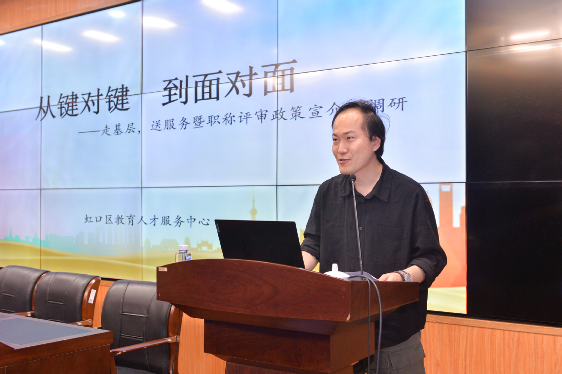 会前,虹口区教育人才服务中心副主任徐彬受邀作职称评审政策宣介专题讲座,帮助全校教师全面了解职称评审新政,推动教师专业化发展。