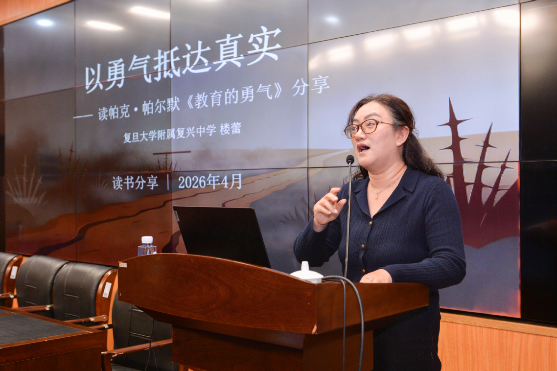 会上,4位教师代表分别进行师德主题读书交流发言,分享在阅读教育思想源流、名师成长叙事等作品中浸润品格、提升境界的所感所悟。虹教系统学科高地理事长、学校英语教研组组长楼蕾作《以勇气抵达真实——读帕克·帕默尔<教育的勇气>分享》交流发言。虹教系统班主任工作室成员、语文教师沈雨菲作《从“燃灯校长”到“灯盏星河”——读<张桂梅>有感》交流发言。虹教系统骨干教师、地理教师姚振兴作《以师者之姿 守育人初心——读于漪老师<教育的姿态>一书有感》交流发言。2025年入职的生物教师张徵菲作《让教育初心在学科课堂中落地生根——读<于漪教育教学思想概要>有感》交流发言。