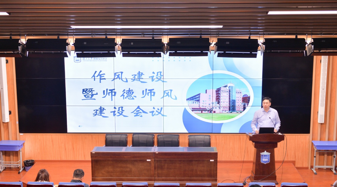2026年是虹教系统师德师风建设年。4月10日下午,我校召开作风建设暨师德师风建设会议,部署我校师德师风建设年工作任务,表彰2024(学)年度荣获区教育局嘉奖的教职工。