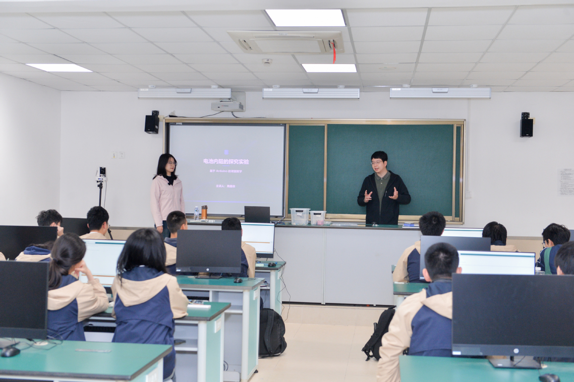 4月16日,复旦大学与复旦大学附属复兴中学联合打造的物理实验系列拓展课第四课,在复兴中学物理DIS实验室3305顺利开讲。 本次课程聚焦“电池内阻研究”,以生活现象为切口,借助Arduino等前沿实验手段,引导学生在动手操作中锻炼物理思维,打通理论与实践的“最后一公里”。
