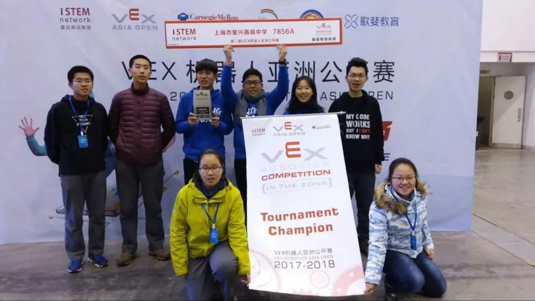 12月29日~12月31日,2017-2018赛季VEX机器人亚洲公开赛在苏州国际博览中心隆重举办。本次比赛吸引了来自世界各地的300多支VEX机器人竞赛队伍参与,我校也派出两支代表队参赛,在青少年活动中心饶志刚老师的带领下,分别斩获一二等奖,并且在资格赛淘汰赛中勇往直前,最终获得了本次亚洲公开赛联队赛冠军。晋级明年4月在美国举办的vex机器人世界锦标赛。