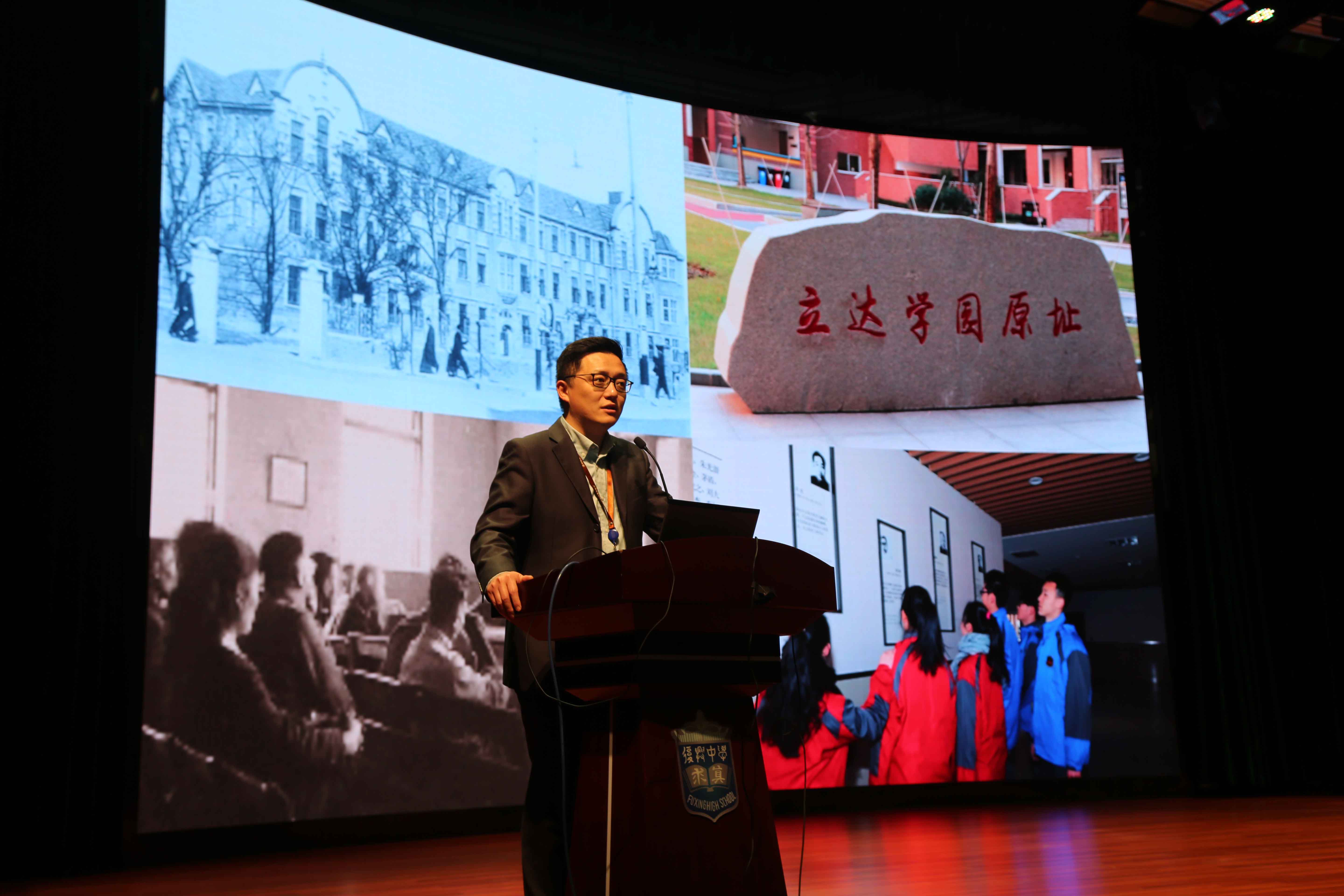 上午8:30,来歌堂内座无虚席。学校发展中心主任徐凯里老师为初三学生家长们详细介绍了学校发展情况。他从学校概况、办学理念、校史沿革、校园设施、课程建设、师资队伍、培养方式、学生活动等方面,全方位地展示了复兴的特色和优势。徐老师借用“复”和“興”的字形结构,指出复兴是一所具有归零心态、始终准备新的出发的学校,是一所充满守正、创新精神的学校,也是一所齐心协力、同心同德、共襄盛举的学校。他表示,未来的复兴将继续深化创新实验室建设、个性化定制课程、强化师资力量,明日之星荟萃于此,复兴也必将迎来更美好的明天。