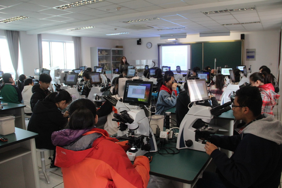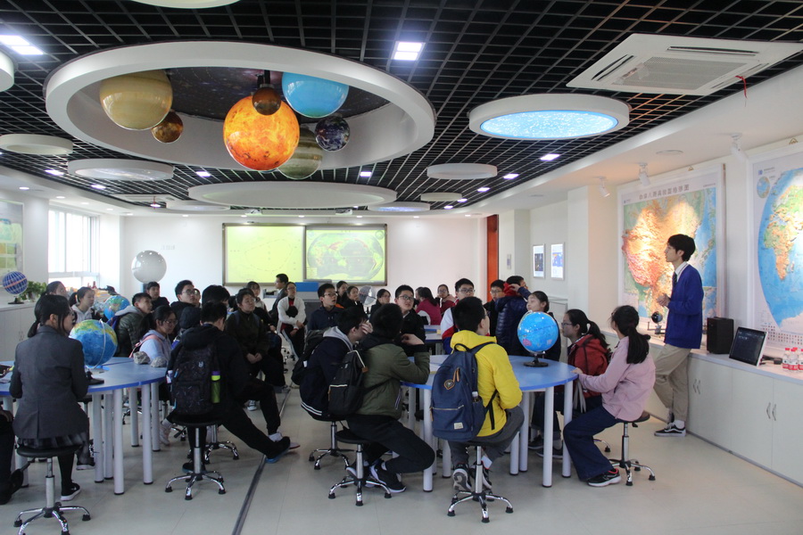 在物理实验室,学生们进行了STEM课程体验,感受了物理探究的乐趣;在化学实验室,学生们了解了实验技巧;在生物实验室,学生们学习了如何使用电子显微镜进行观察;在数字地理实验室,学生们通过地形图等工具深化对地球家园的认识;在天象馆,学生们通过球幕影厅观看了火箭发射的全过程。高端的科技项目和学习环境,撬动了初三学生参与科研、追求真知的初心。