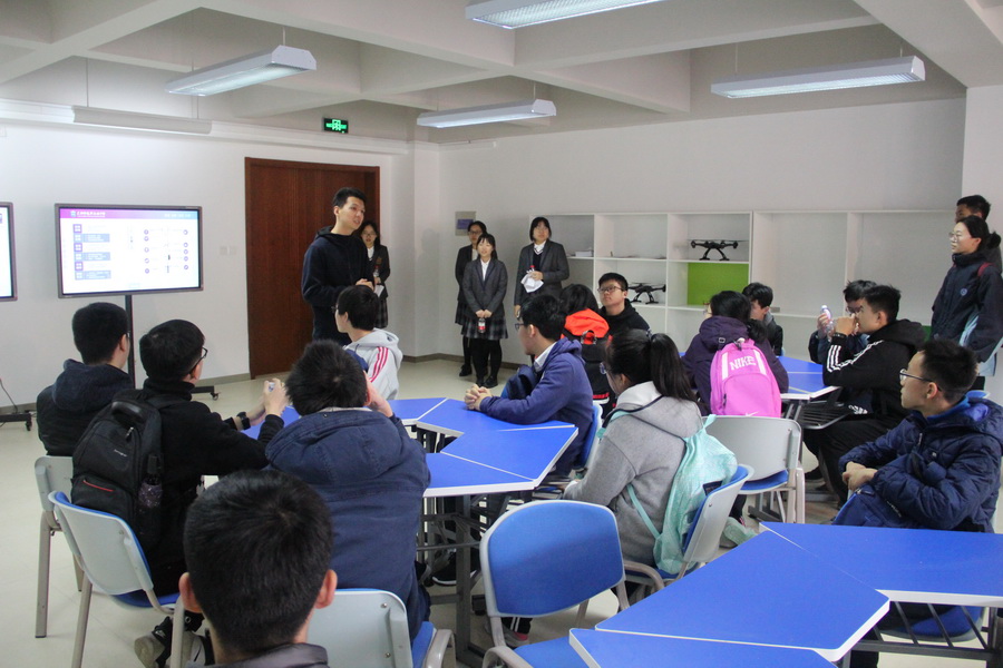 下午12:40分后,初三学生们在志愿者的带领下,穿梭于学校的报告厅、专用教室、创新实验室等场馆,开启了多姿多彩的校园文化体验活动。