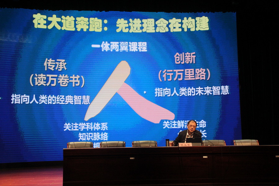 上午8:30,来歌堂内座无虚席。陈永平校长为初三学生家长们详细介绍了学校发展情况。他从学校概况、办学理念、校史沿革、校园设施、课程建设、师资队伍、培养方式、学生活动等方面,全方位地展示了复兴的特色和优势。