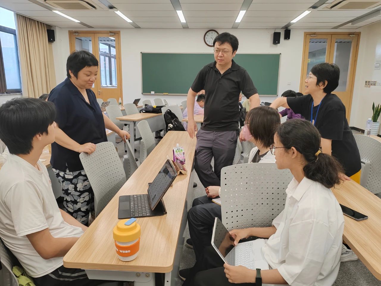 在课程的最后,老师和5位助教老师和我们一起以小组的形式用一个小时的时间分别有针对性地讨论了课题的研究方向,确定了各自的研究目标的大致方向。我和同组的同学与老师交换了各自对研究课题的看法,蔡星星博士和南蓬教授对我们组的初步想法进行评估和修改,我们暂定了明后天的任务。