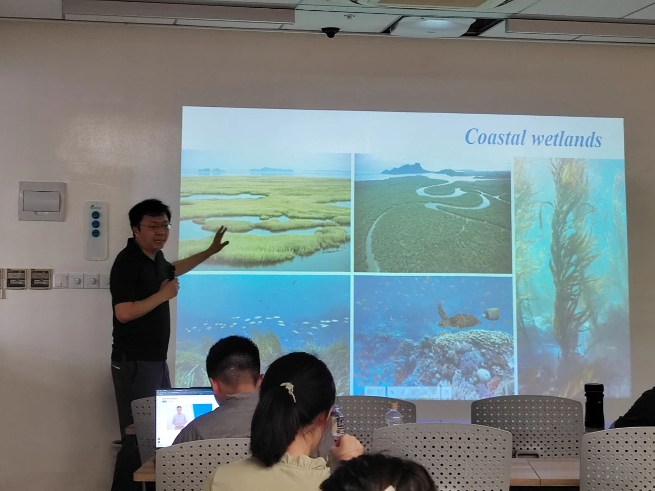 下午,贺强老师为同学们介绍了海岸带湿地生态系统及其修复。他通过草-蟹-水鸟的实验生动阐述了食物链之间的相关作用对生态系统恢复的影响。该讲座不仅为我们提供了宝贵的知识,也为我们树立了生态保护的责任感。期待同学们能够将所学知识应用于实践,为推动全球可持续发展贡献自己的力量。